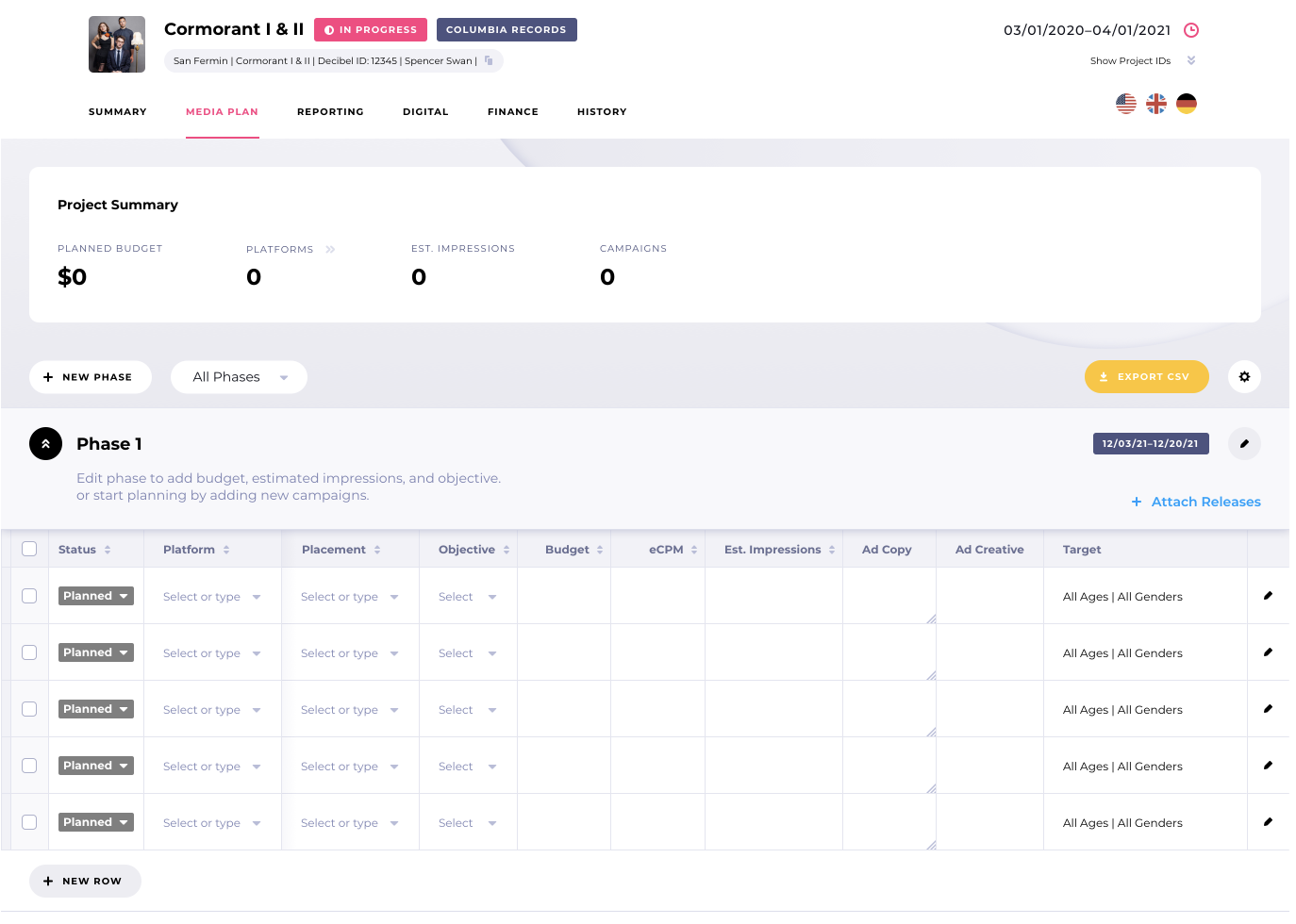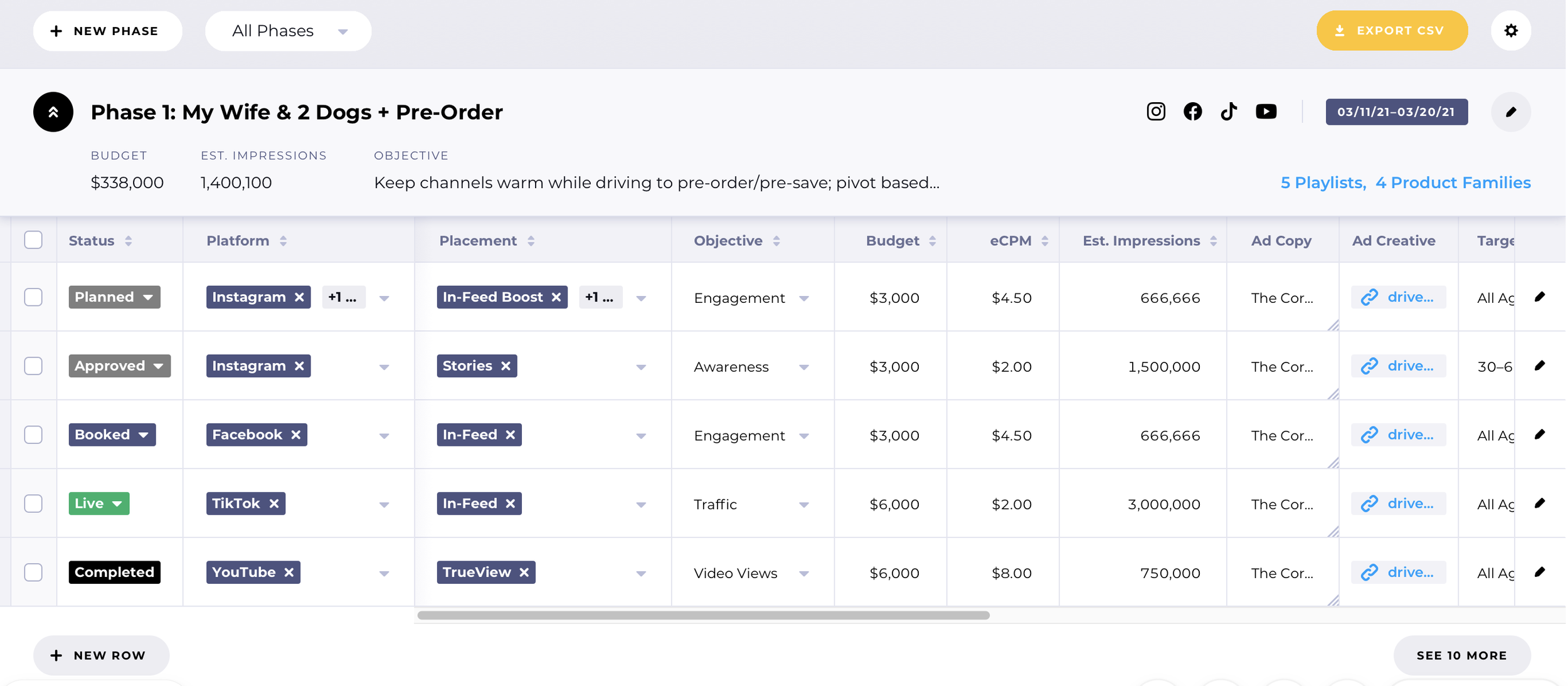 Marketers can book and track campaigns across every major social platform, and group those campaigns by the releases they’re promoting.