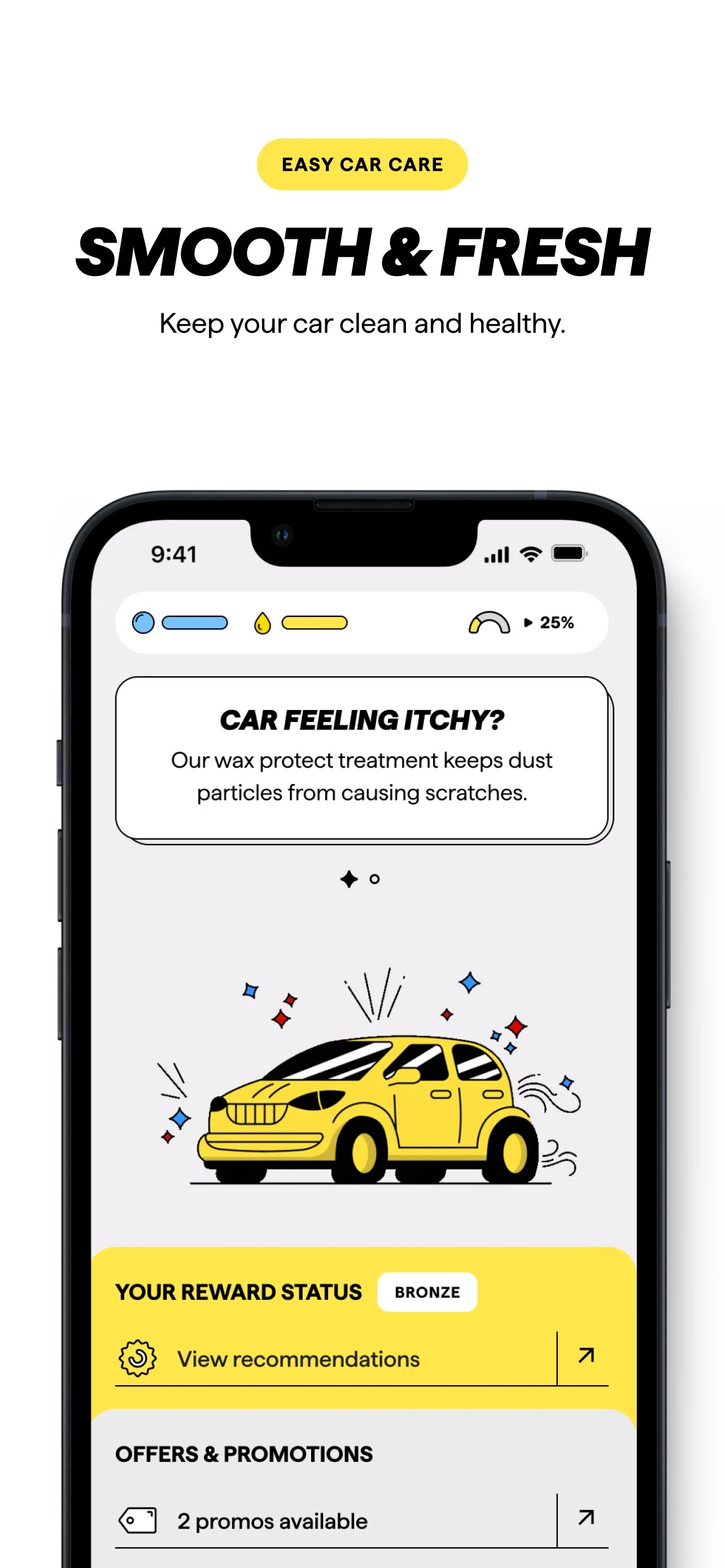 An iOS and Android app built in React Native that does more than deliver discounts to loyal customers, it rewards them for being good car parents. The digital experience personifies their car, gives them money-saving tips, and provides a compelling tier progression system that incentivizes more frequent visits.